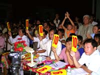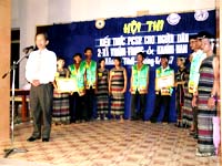 Phần thi chào hỏi và giới thiệu, thí sinh cả hai đội trong trang phục truyền thống đã trình bày các thông tin liên quan đến nơi mình đang sống, công tác phòng chống sốt rét tại địa phương, ngoài ra các thí sinh còn trình bày một cách dí dỏm về bản thân và sở thích cá nhân. Phần thi năng khiếu hai đội đã cống hiến cho khán giả những ca khúc trữ tình, những giai điệu mượt mà về quê hương đất nước, về con người đang sống và làm việc tại vùng rừng núi xa xôi, hẻo lánh mang đậm bản sắc dân tộc; đặc biệt là Tiểu phẩm “Vợ khuyên chồng mang theo màn và thuốc sốt rét khi đi rẫy”.Phần thi Kiến thức diễn ra một cách sôi nổi, gay cấn trước sự cỗ vũ nhiệt tình của gần 500 khán giả là người dân hai xã Khánh Trung và Khánh Nam. Xen kẽ giữa các phần thi là những câu hỏi dành cho khán giả được trả lời chính xác chứng tỏ hiệu qủa của biện pháp truyền thông giáo dục phòng chống sốt rét mà Dự án đã thực hiện trong gần một năm qua; những giọng ca trẻ trung, những điệu nhảy bốc lửa góp vui của bà con hai xã đã làmHội thi càng thêm phần sôi động. Kết thúc Hội thi, Đội xã Khánh Nam đã đoạt giải nhất, Đội xã Khánh Trung đoạt giải nhì với số điểm khít khao. |
