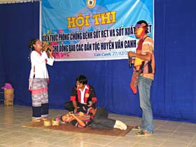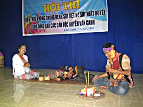 Trong khuôn khổ các hoạt động Đề án “Thí điểm lồng ghép quản lý bệnh sốt rét và sốt xuất huyết ở tuyến y tế cơ sở tại huyện Vân Canh, tỉnh Bình Định”; Ngày 27/12/2002, Viện Sốt rét-KST-CT Quy Nhơn phối hợp với Trung tâm y tế huyện Vân Canh đã tổ chức “Hội thi Kiến thức phòng chống sốt rét và sốt xuất huyết cho đồng bào các dân tộc huyện Vân Canh”.