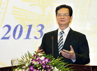 Thủ tướng Nguyễn Tấn Dũng phát biểu chỉ đạo tại Hội nghị toàn quốc đánh giá và triển khai  thực hiện chính sách vùng dân tộc và miền núi, ngày 11/4. Ảnh: VGP/Nhật Bắc  |