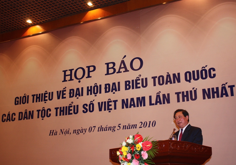 Bộ trưởng, Chủ nhiệm Ủy ban Dân tộc Giàng Seo Phử thông báo nội dung Đại hội đại biểu toàn quốc các dân tộc thiểu số lần thứ nhất (Ảnh: A.C) |