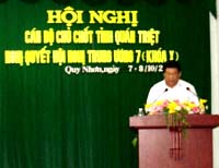 Trong hai ngày 7-8/2008, Ban thường vụ Tỉnh ủy Bình Định đã tổ chức Hội nghị cán bộ chủ chốt quán triệt Nghị quyết Hội nghị Trung ương 7 khoá X do đồng chí Vũ Hoàng Hà-Ủy viên Trung ương Đảng-Bí thư Tỉnh uỷ chủ trì.
