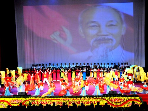 | Chương trình nghệ thuật hoành tráng và xúc động ca ngợi Đảng, Bác Hồ. Ảnh HH |