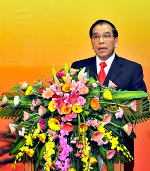 Tổng Bí thư Nông Đức Mạnh đọc diễn văn tại Lễ kỷ niệm. Ảnh HH |