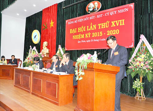 Đ/c Nguyễn Văn Chương, Bí thư Đảng bộ, Viện trưởng Viện Sốt rét- KST-CT Quy Nhơn báo cáo tổng kết công tác Đảng nhiệm kỳ 2010-2015.  |