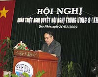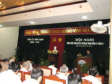 Thực hiện hướng dẫn của Ban Tuyên giáo trung ương, ngày 24/3/2009, Ban Thường vụ Tỉnh ủy Bình Định đã triệu tập Hội nghị cán bộ quán triệt các Nghị quyết Hội nghị Ban chấp hành Trung ương Đảng lần thứ 9 (Khóa X).