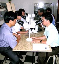 Học viên Cao học  đang thực hành tại labo kiểm tra kỹ thuật-Khoa Dịch tễ của Viện  |
