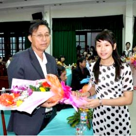 Đại diện các khóa học sinh đã kính tặng các thầy cô những bó hoa tươi thắm tri ân thầy cô giáo của mình |