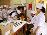 Sau 3 tháng tham gia học tập và phục vụ người bệnh tại các bệnh viện, nhà trường đã phối hợp với Điều dưỡng trưởng bệnh viện, các Bác sỹ và điều dưỡng các khoa tiến hành kiểm, tra đánh giá kết quả học tập. Nội dung kiểm tra tập trung vào 4 nội dung chính: Kỹ thuật lấy mạch, nhiệt độ, đếm nhịp thởvà đo huyết áp. Kỹ thuật tiêm truyền: tiêm bắp, tiêm tĩnh mạch và truyền dịch. Kỹ thuật rửa và băng vết thương. Kỹ thuật làm xét nghiệm tổng quát và ký sinh trùng sốt rét. |