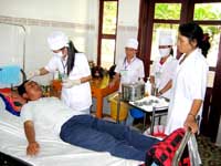 Học sinh thực hành rửa vết thương cho bệnh nhân tại bệnh viện |