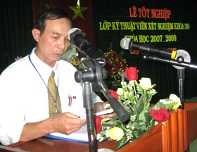 TS. Triệu Nguyên Trung-Hiệu trưởng,Viện trưởng tuyên bố bế giảng | Ths.BS. Nguyễn Văn Trung-Trưởng Khoa Đào tạo báo cáo kết quả đào tạo |