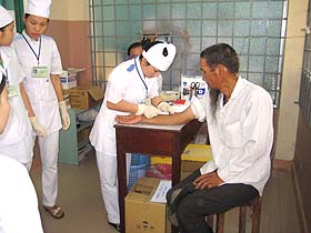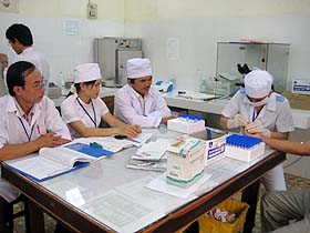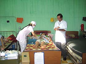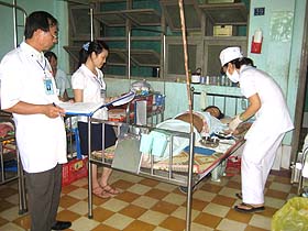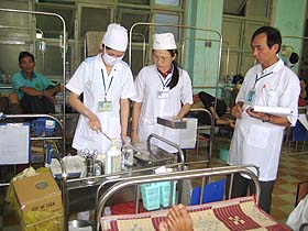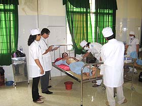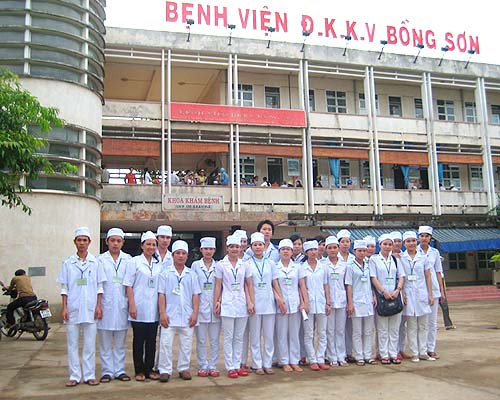 Các học sinh khóa 30 Trường Viện Sốt rét-Ký sinh trùng-Côn trùng Quy Nhơn trong đợt thực tập tại Bệnh viện Đa khoa khu vực Bồng Sơn. |