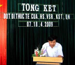 Lãnh đạo Trung tâm Y tế Quãng Ngãi đang phát biểu tổng kết đợt thực tập |