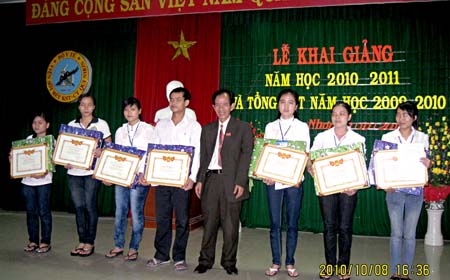 TS. Triệu Nguyên Trung-Viện trưởng phát tặng giấy khen cho các học sinh giỏi |