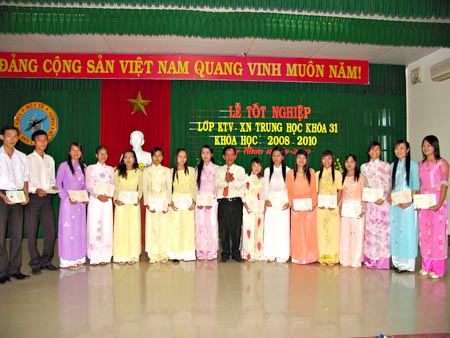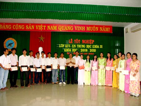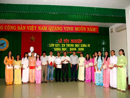 Kỳ thi tốt nghiệp (9-14/9/2010), được tổ chức gồm 3 môn thi chính là môn chính trị, lý thuyết chuyên môn và thực hành nghề nghiệp. Điều kiện dự hi tốt nghiệp các em phải tích lũy đủ số học phần (môn học) quy định cho chương trình đào tạo, không còn học phần/môn học bị điểm dưới 5; không bị kỷ luật từ mức đình chỉ học tập và không bị truy cứu trách nhiệm hình sự tới thời điểm xét dự thi tốt nghiệp. Điều kiện công nhận tốt nghiệp, điểm trung bình chung các mon thi tốt nghiệp đạt từ 5 trở lên; tối đa chỉ 1 môn thi tốt nghiệp có điểm thi dưới 5,0 nhưng không thấp hơn 4,5; không bị kỷ luật đến thời điểm xét công nhận tốt nhiệp. Xếp loại tốt nghiệp: điểm xếp loại tốt nghiệp là trung bình cộng của điểm trung bình chung toàn khóa (2 năm học) và điểm trung bình các môn thi tốt nghiệp được tính làm 5 mức xuất sắc, giỏi, khá, trung bình khá và trung bình. Những học sinh xếp loại tốt nghiệp từ loại khá trở lên sẽ bị giảm một mức nếu vi phạm một trong các trường hợp sau: có tổng số học trình (môn học) phải thi lại vượt quá10% so với tổng số học trình/ môn học quy định (3 môn), bị kỷ luật trong thời gian học từ mức cảnh cáo trở lên, học sinh thi lại tốt nghiệp đạt yêu cầu chỉ được xếp loại trung bình. Từ đó kết quả điểm kỳ thi tốt nghiệp có 32 em đạt xuất sắc (42.38%), 26 đạt giỏi (35.61%), 9 đạt khá (9.73%), 5 đạt trung bình khá (6.84%) và 1 trung bình (1.36%).