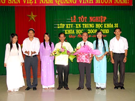 Những cánh hoa kỷ niệm của học sinh đến TS.Triệu Nguyên Trung và Ths. Nguyễn Văn Trung |