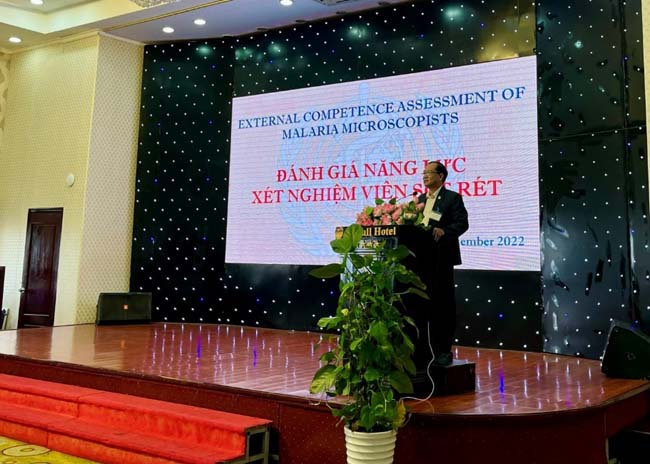 Phát biểu khai mạc, PGS.TS. Hồ Văn Hoàng - Viện trưởng Viện Sốt rét-KST-CT Quy Nhơn nhấn mạnhtầm quan trọng của việc đánh giá năng lực xét nghiệm SRtrong chẩn đoán KSTSR. Viện trưởng cho biết phát hiện KSTSR bằng KHV hiện nay vẫn là phương pháp chẩn đoán bệnh sốt rét (SR)trên thế giới và được WHO coi là chuẩn vàng trong việc xác định KSTSR. Kỹ năng của XNVSR rất quan trọng trong chương trình SR, bao gồm cả chẩn đoán bệnh cũng như thực hiện công tác đào tạo, kiểm tra, giám sát hoạt động của các điểm kính hiển vi trên toàn quốc. Chính vì vậy cần có một chương trình đánh giá đạt chuẩn cao cho XNVSR để có thể đảm bảo được chất lượng chẩn đoán SR.