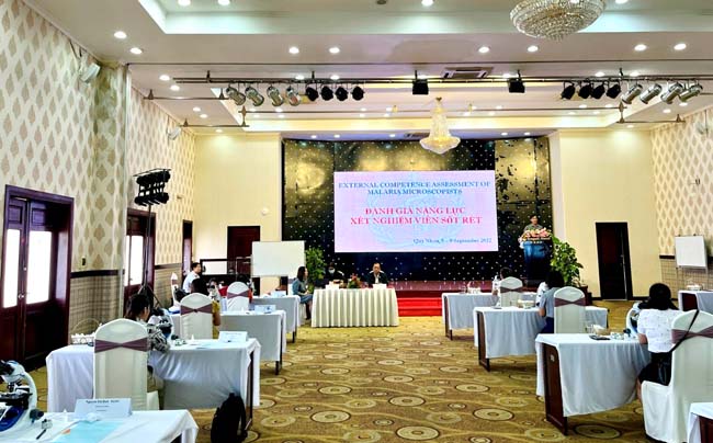 Nhằm đánh giá năng lực của xét nghiệm viên sốt rét (XNVSR) tuyến trung ương, Văn phòng Đại diện Tổ chức Y tế thế giới (WHO) tại Việt Nam đã tổ chức Khoá Đánh giá Năng lực Xét nghiệm viên Sốt rét (External Competency Assessment for Malaria Microscope_ECAMM) cho các cán bộ của 3 Viện Sốt rét-KST-CT tại thành phố Quy Nhơn từ ngày 05-09/9/2022.