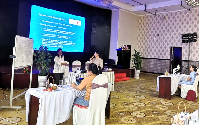 Qua 5 ngày học tập, đánh giá, các XNV phải thực hiện soi phát hiện các loàiKSTSR và đếm mật độ KSTSR với tổng số 56 lam thuộc các loàiPlasmodium falciparum, Plasmodium vivax, Plasmodium malariae, Plasmodium ovale và một số lam phối hợp. Số lam mẫu này được lấy từ ngân hàng lam của Tổ chức Y tế thế giới (WHO slide bank).