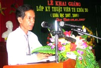 ThS. Nguyễn Văn Trung-Trưởng Khoa Đào tạo đã báo cáo mục tiêu đào tạo, chương trình đào tạo kỹ thuật viên trung cấp, tổng kết đánh giá kết quả các khóa đào tạo trong năm học 2006-2007, kết quả xét tuyển và công tác ổn định tổ chức lớp Kỹ thuật viên Trung học Khóa 30 sau khi nhập học. Khóa 30 được chia làm hai lớp 30A và 30B, mỗi lớp có 40 học sinh được sắp xếp cân đối theo tỷ lệ nam, nữ và các tỉnh trong khu vực; Khoa đào tạo đã tạm thời chỉ định Ban cán sự lớp, Ban chấp hành Chi đoàn theo đề nghị tạm thời của lớp trước khi tổ chức đại hội chính thức bầu ban cán sự lớp mới. Theo Khung Chương trình đào tạo hai năm của Bộ Giáo dục & Đào tạo, tổng số tiết học là 2.445 tiết (lý thuyết 959 tiết và thực hành 1.486 tiết); trong đó có 6 môn học chung (465 tiết), 9 môn cơ sở (420 tiết), 9 môn chuyên môn và chuyên ngành (1.560 tiết) và tỷ lệ số tiết lý thuyết/thực hành toàn khóa là 1/1,55. Cấu trúc chương trình đào tạo mỗi năm được chia làm hai học kỳ, thời gian của các hoạt động trong khóa học được tính theo tuần, cuối khóa học sinh được bố trí đi thực tập bệnh viện và thực tế tốt nghiệp tại cộng đồng. Từ năm 2007, Bộ Giáo dục & Đào tạo quy định điểm trung bình hai năm học và điểm trung bình các môn thi tốt nghiệp chia đôi để xếp hạng tốt nghiệp toàn khóa theo 5 mắc độ xuất sắc, giỏi, khá, trung bình khá và trung bình; học viên nào ở mức dưới trung bình sẽ không được dự thi và không được công nhận tốt nghiệp do đó đòi hỏi các học viên sẽ phải nỗ lực học tập ngay từ những năm học đầu tiên.