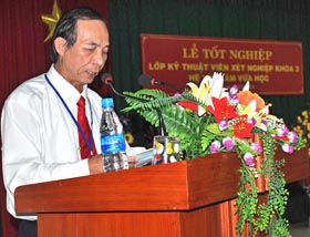 Ths.BS. Nguyễn Văn Trung-Trưởng Khoa Đào tạo báo cáo kết quả đào tạo và kết quả kỳ thi tốt nghiệp Khóa 3 | PGS.TS Triệu Nguyên Trung, Viện trưởng-Hiệu trưởng phát biểu chỉ đạo |