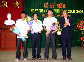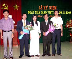 Th.S Lê Ngọc Linh-Phó Viện trưởng tặng hoa cho những học sinh đạt thành tích xuất sắc trong công tác đoàn thể | Hoc sinh các khóa của trường Viện tặng hoa chúc mừng các giảng viên |