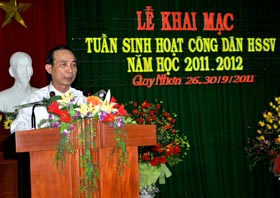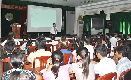 - ThS Nguyễn Văn Trung, Trưởng khoa Đào tạo và CN Hoàng Truyền, Phó trưởng khoa Đào tạo giới thiệu những nội dung liên quan Luật Giáo dục năm 2005 và Luật sửa đổi, bổ sung một số điều của Luật Giáo dục năm 2009; các nội dung, yêu cầu trong đào tạo theo tín chỉ và học tập đáp ứng nhu cầu của xã hội ; các Quy chế, quy định về đào tạo, về công tác HSSV của Bộ Giáo dục và Đào tạo và các nội dung do nhà trường quy định; thông tin về chủ trương tín dụng cho HSSV; một số nội dung công tác trọng tâm của năm học 2011 – 2012.