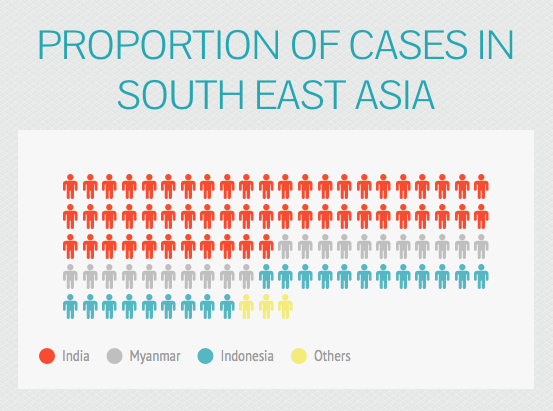Các vũng nước tù đọng, là một nơi sinh sản cho muỗi, theo sau những cơn mưa mỗi năm gây ra sự gia tăng tỷ lệ mắc các bệnh liên quan đến nước. Sốt rét là bệnh phổ biến thứ ba ở Ấn Độ sau tiêu chảy và thương hàn. Trong năm 2014, số trường hợp mắc bệnh sốt rét ở nước này đã tăng lên 1.070. 513 ca từ 881.730 ca trong năm 2013. 35 quốc gia, Ấn Độ là một trong số đó, đóng góp tới 96% tổng số trường hợp mắc bệnh sốt rét và 98% tổng số ca tử vong do bệnh sốt rét trên thế giới. Ấn Độ cũng là một trong ba nước chiếm 97% các trường hợp mắc bệnh sốt rét ở Đông Nam Á.
