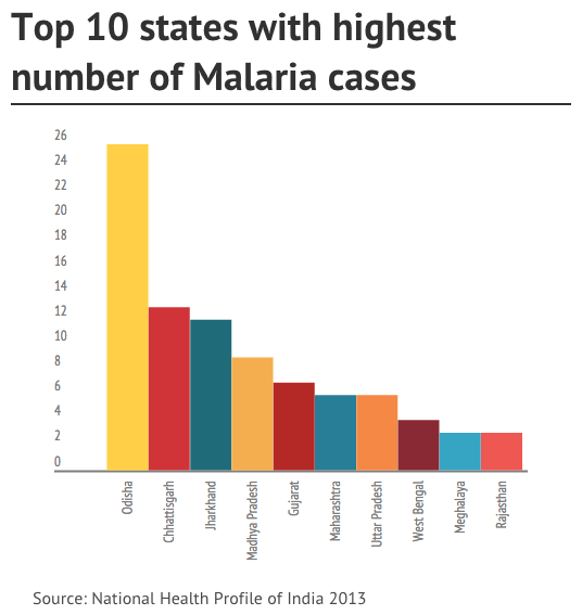 Số lượng tối đa các trường hợp mắc bệnh sốt rét ở các thành phố của Ấn Độ được báo cáo từ Ahmedabad, Chennai, Kolkata, Mumbai, Vadodara, Vishakapatnam, Vijayawada và Pune nhờvào việc gia tăng đô thị hóa, công nghiệp hóa, và các dự án xây dựng. Theo báo cáo hàng năm của Bộ Y tế và Phúc lợi gia đình 2013-14 , dự án sốt rét đô thị hiện đang được triển khai tại 131 thị trấn của 19 bang và vùng lãnh thổ bao gồm 130 triệu người nhưng nó đủ hay chưa?