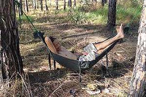 Nằm võng không được bảo vệ, muỗi dễ dàng đốt máu. (ảnh internet) |