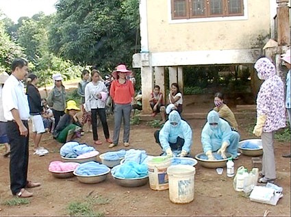 Nhân viên y tế thực hiện tẩm màn bằng hóa chất phòng chống sốt rét . Nguồn ảnh:www.t4gquangtri.vn |
