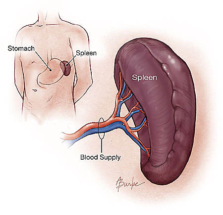 [2] Lách có thể bị chèn ép bởi cơ bụng theo hoạt động sinh lý như đại tiện, hắt hơi, ho;