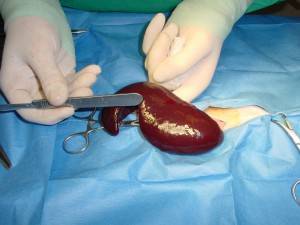 Ngoài ra, sự xé rách của bao lách ở một hay vài chỗ trong nhu mô lách bên dưới có thể thấy được. Vết rách này có thể nhỏ hay lớn (từ độ I -IV) và có thể ở bất cứ vị trí nào trên bề mặt lách. Cả 2 ca được mô tả ở trên, đều có lách phì đại. Về mặt vi thể, cho thấy nhiều hạt sắc tố, hồng cầu nhiễm ký sinh trùng sốt rét và hồng cầu chưa bị nhiễm và một quá trình tăng sinh đại thực bào trong các mao mạch, xoang tĩnh mạch và vùng tuỷ lách.