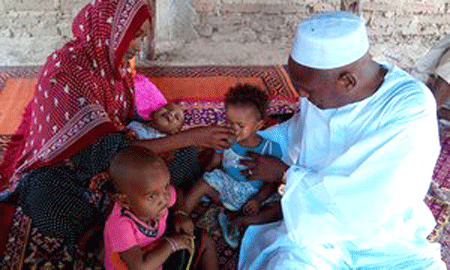 | Trẻ em nhận được liều thuốc sốt rét thứ hai tại Chad. Liều đầu tiên được cho bởi các nhân viên y tế và cha mẹ cho trẻ uống liều tiếp theo. Ảnh: Hiệp hội sốt rét (Malaria Consortium) |