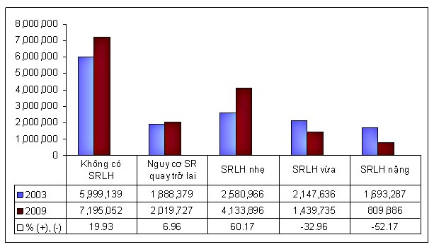 2 | SRLH nhẹ SRLH vừa SRLH nặng | 1115 (58,10%) | 1146 (54,65%) | + 2,78 | 6.421.889 (44,88%) | 6.383.517 (40,92%) | - 0,59% |