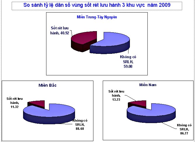 So với toàn quốc, dân số vùng sốt rét lưu hành nặng của khu vực miền Trung-Tây Nguyênchiếm tỷ lệ cao nhất là 7,27%, miền Bắc chỉ ciếm 5,06%, miền Nam chiếm 4,97%.