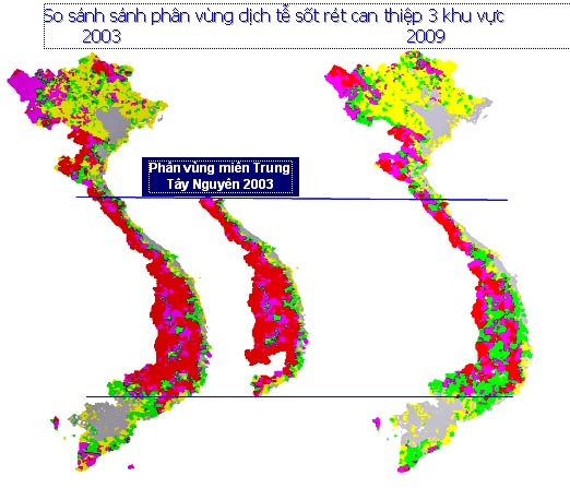 So sánh với phân vùng dịch tễ can thiệp năm 2003, phân vùng năm 2009 cho thấy: