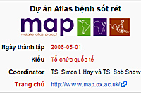Dự án lập bản đồ cho bệnh sốt rét, viết tắt là MAP_Malaria Atlas Project là một dự án phi lợi nhuận được tổ chức Wellcome Trust, Anh tài trợ trong 5 năm. MAP là một dự án liên kết giữa Nhóm Sức khoẻ cộng đồng và Dịch tễ học, thuộc Trung tâm y học địa lý Kenya và nhóm Sinh thái học và Dịch tễ học không gian, thuộc Đại học Oxford, Anh với các điểm hợp tác vệ tinh ở châu Mỹ và châu Á Thái Bình Dương. Dự án MAP cũng còn được xem dưới một tên gọi cụ thể hơn với mục đích rõ ràng hơn là Phát cũng như xây dựng nên các bản đồ toàn cầu của nguy cơ sốt rét (Developing Global Maps of Malaria Risk) do tiến sĩ Simon I Hay và tiến sĩ Bob W Snow điều hành.