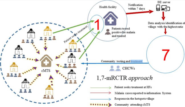 Với sự thành công của chiến lược “1-3-7” tại Trung Quốc và sáng kiến WHO-T3, các nhóm nghiên cứu của Trung Quốc và Tanzania đã cùng phát triển một phương pháp tiếp cận mới để giám sát và ứng phó với bệnh sốt rét tại Tanzania. Phương pháp sàng lọc và đáp ứng dựa vào cộng đồng “1,7-mRCTR” (1,7-malaria reactive community-based testing and response), hoạt động ở cấp thôn/bản từ tháng 9 năm 2015 đến tháng 6 năm 2018. Chiến lược này cũng bắt buộc báo cáo bất kỳ trường hợp sốt rét nào đã được phát hiện tại các cơ sở y tế trong vòng 24 giờ, kết hợp với việc theo dõi vào tuần tiếp theo bao gồm điều trị tập trung tại các làng có ổ bệnh để ngăn chặn sự lây truyền. Cách tiếp cận có mục tiêu này phù hợp với sáng kiến có tác động cao của WHO đối với các quốc gia có mức độ lây truyền trung bình và cao [32], điều chỉnh kinh nghiệm của Trung Quốc và sáng kiến của WHO-T3 vào bối cảnh địa phương của Tanzania.