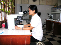 CN. Nguyễn Thị lệ Huyền-tổ trưởng tổ kiểm tra kỹ thuật đang chụp hình ảnh các lam kiểm tra. |