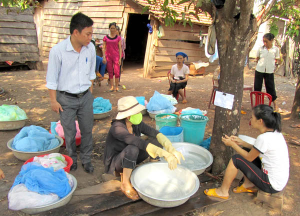 Cán bộ Y tế Đắk Lắk, tẩm màn bằng hóa chất để phòng chống bệnh Sốt rét