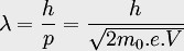 Như vậy, bước sóng của điện tử quan hệ với thế tăng tốc V theo công thức: