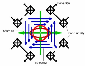 Là việc điều chỉnh hệ thấu kính hội tụ sao cho chùm tia có tính chất đối xứng trục quang học. Khi quang sát trên màn ảnh, chùm tia phải có hình tròn và hội tụ đồng tâm tại một điểu (khi mở rộng và thu hẹp). Nguyên lý của việc điều chỉnh này là điều chỉnh sự cân bằng của từ trường sinh ra trong các cuộn dây của thấu kính hội tụ.