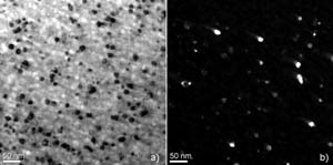Ảnh trường sáng (a) và trường tối mẫu hợp kim FeSiBNbCu.