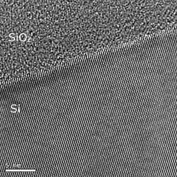 Ảnh hiển vi điện tử độ phân giải cao chụp lớp phân cách Si/SiO2, có thể thấy các lớp nguyên tử Si |