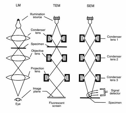 Mô hình nguyên lý của TEM so với kính hiển vi quang học |