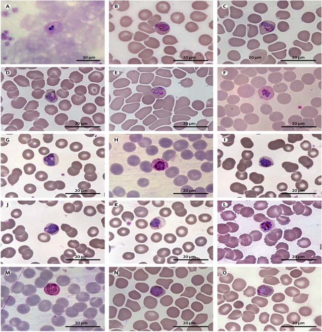 Hình 10. Plasmodium simium trên lam nhuộm giêm sa ở bệnh nhân tạiRio de Janeiro, Brazil