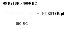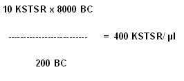 Hay đơn giản công thức, thì nhân 40: 10 KSTSR x 40 = 400 KSTSR/µl