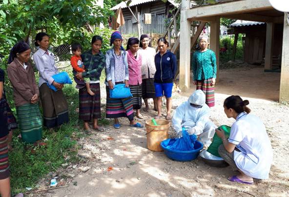 Người dân tham gia hưởng ứng tẩm màn phòng chống và loại trừ sốt rét