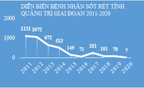 Theo số liệu báo cáo của Trung tâm Kiểm soát bệnh tật tỉnh, đến năm 2020 số người mắc bệnh sốt rét còn 7 người, giảm 99,37% so với năm 2011 (1121 người); Tỷ lệ mắc sốt rét là 0,01/1.000 dân; không có tử vong do sốt rét. Các chỉ tiêu về giảm tỷ lệ mắc sốt rét và khống chế tỷ lệ chết do sốt rét theo mục tiêu của Chiến lược đều đã vượt chỉ tiêu đặt ra. Đồng thời, phạm vi và số người sống trong vùng có bệnh sốt rét lưu hành cũng ngày càng bị thu hẹp, nhiều huyện, thị xã, thành phố nhiều năm liền không có ca lây nhiễm tại chỗ như Đông Hà, Thị xã Quảng Trị, Hải Lăng, Triệu Phong, Vĩnh Linh… và sớm đạt được mốc loại trừ sốt rét theo quy định của Bộ Y tế.