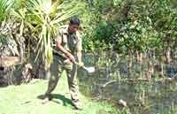 Tháng 3/2014. WHO - Đó là buổi sáng sớm ở vùng nhiệt đới Đông Timor (Timor-Leste), một nhóm 4 người đàn ông mặc đồng phục có thể được nhìn thấy trong một khu vực đất ngập nước lúc nhúc cá sấu bên ngoài thủ đô Dili. Những người đàn ông được trang bị muôi canh (soup ladles), ống hút và bát nhựa (pipettes and plastic bowls), mắt dán chặt xuống đất, họ đang lấy mẫu nước để thu thập và lưu trữ trong hộp nhựa nhỏ. Các nhân viên Bộ Y tế đang làm việc cho Chương trình phòng chống sốt rét quốc gia (National Malaria Control Programme) ở Đông Timor. Một trong những nhiệm vụ của họ: khảo sát mật độ ấu trùng muỗi ở trong nước và xác định các loài khác nhau để hiểu rõ hơn các vectơ chính, hành vi của chúng và làm thế nào để phát triển các biện pháp hiệu quả nhằm đối phó với muỗi và do đó bảo vệ người dân tránh nhiễm bệnh sốt rét.